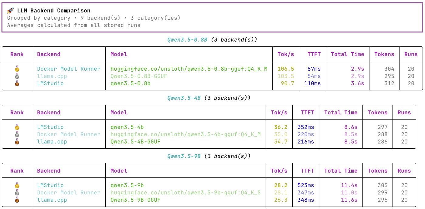 Pas de Ollama, je n'ai jamais réussi à faire tourner un Qwen3.5 avec. (si quelqu'un a une idée, je veux bien l'ajouter à mes tests).